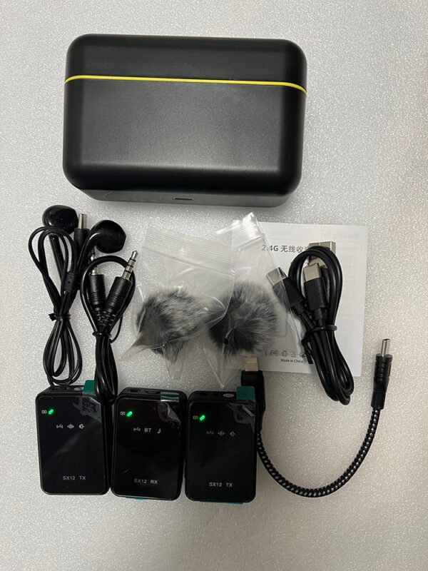 Designed for both smartphones (Android & iPhone) and DSLR cameras, the SX12 offers real-time sound transmission, noise reduction, and long-range wireless connectivity. Simply plug, pair, and start recording — no complex setup required.