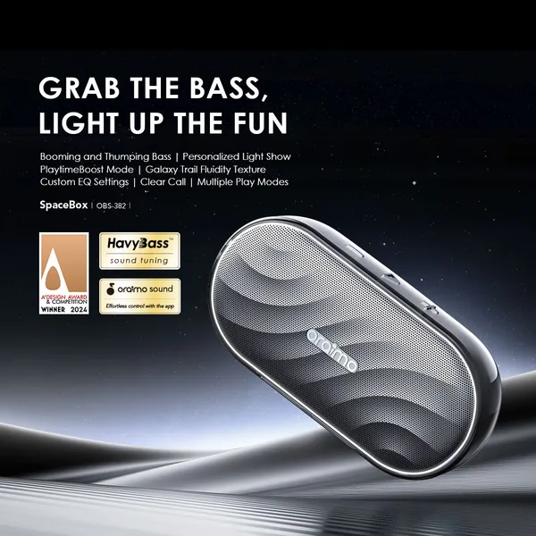 Compact yet powerful, the Oraimo SpaceBox is ideal for both indoor and outdoor use—your ultimate music companion.